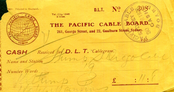 Australia Sydney Receipt Commerce Pacific Cable Board 1927