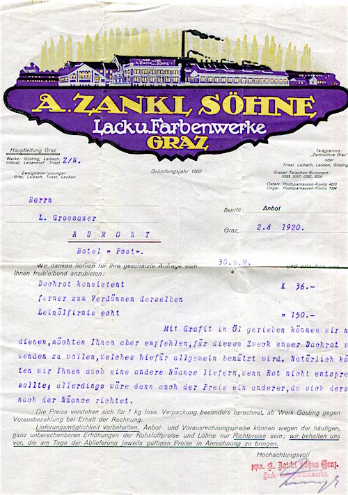 Austria Graz Commerce Zankl Lack Lacquer Paint Stationery 1920