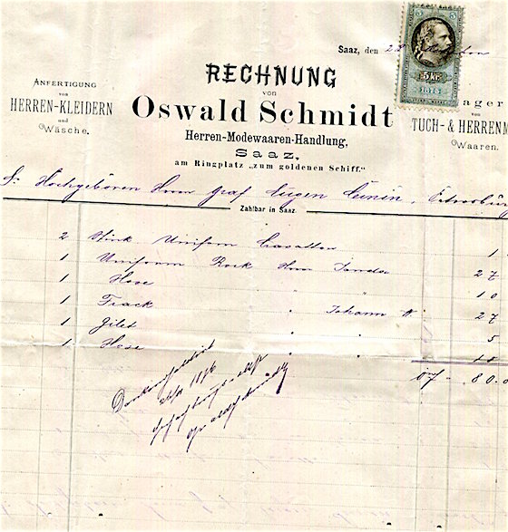 Austria Commerce Saaz Oswald Schmidt Receipt Mens Wear 1876