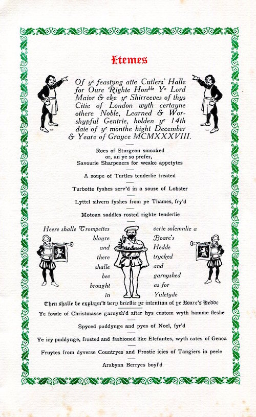 England City Of London Cutlers Hall Menu 1938 Inside