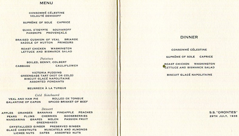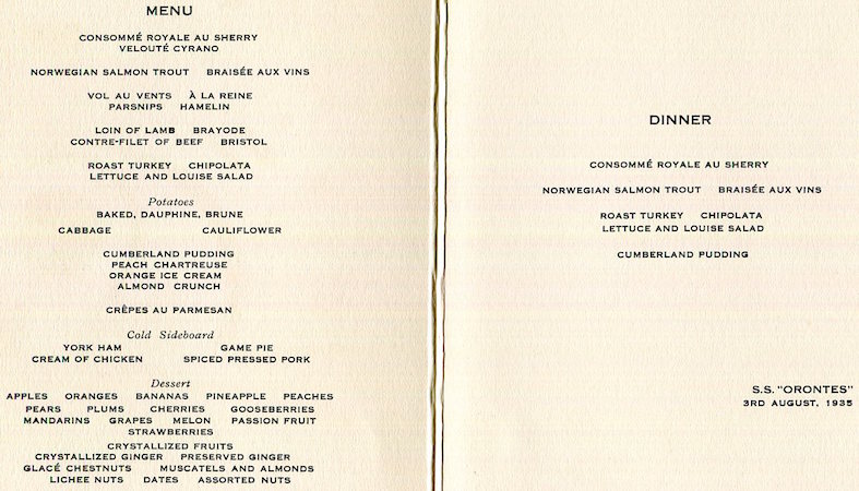 England Transport Steamship Orient Line SS Orontes Menu 1935-2 Inside