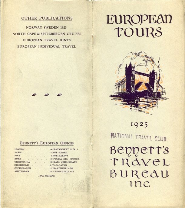 United States Travel Agency Bennetts Travel Bureau Brochure 1925